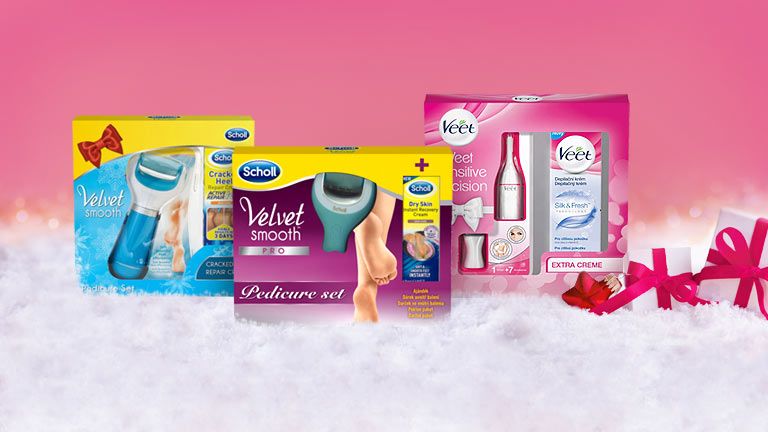 A Veet- és a Scholl-csomagokkal egyszerűen és nagyszerűen lepheted meg szeretteidet. Az egyedi karácsonyi csomagok nemcsak jól mutatnak a fa alatt, de a bennük rejlő termékek szó szerint szinte tetőtől talpig hasznosak. A Veet-csomagban található érzékeny bőrre kifejlesztett krém segítségével a szőrszálak hatékonyan eltávolíthatók, illetve akár 24 órán át hidratálja a bőrt, míg a Veet Sensitive PrecisionTM elektromos trimmelővel gyorsan és precízen formázható az olyan érzékeny testrészeken található szőr, mint az arc, a bikinivonal és a hónalj. A Scholl ajándékcsomagjaival pihe-puha és ápolt lábakat ajándékozhatsz.