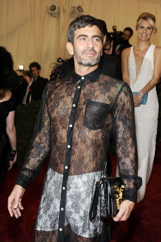 2012 az első férfi pucérruha éve volt, nemcsak a MET-gála, hanem úgy általában a világegyetem történetében. Az elkövető – bátran használhatjuk ezt a kifejezést – Marc Jacobs, aki rögtön egy fehér boxeralsóval is súlyosbította a fekete költeményt.