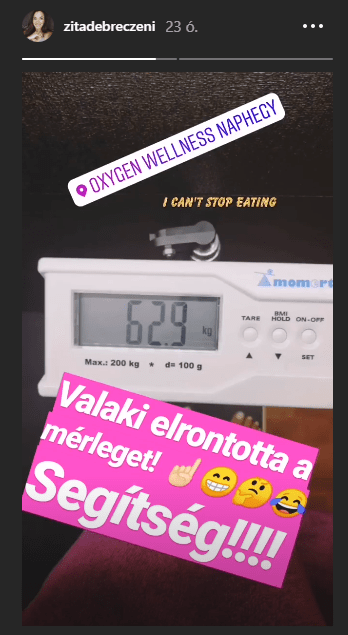 A mérleg éppen 62,9 kilót mutat, aminek valljuk be, sokan örülnénk. Főleg akkor, ha az ember 170 centi, mint Debreczeni Zita, egyenletesen eloszlik rajta a súly. Oké, lehet, hogy most viccelt, ha pedig nem, akkor mi üzenjünk, hogy igenis csodásan néz ki, és nincs szüksége fogyókúrára!