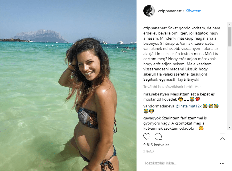 A képen Czippán Anett hasát is jól láthatjuk, ami egyelőre nem ment vissza a szülés óta eltelt 9 hónapban, de ezt ő egyáltalán nem szégyelli.