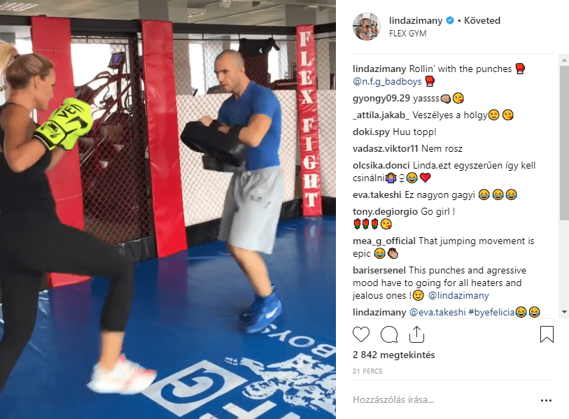 Na, ezt a kemény ütéssorozatot bármelyik férfi megirigyelné. Úgy látszik, még Zimány Linda edzője is nehezen bírja, bár nem csoda, hiszen a modell folyamatosan edz, jó a fizikuma.