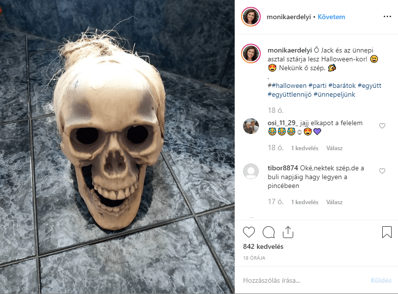 „Ő Jack és az ünnepi asztal sztárja lesz Halloweenkor! Nekünk ő szép” – írta Erdélyi Mónika az Instagram-oldalán, ahol a rajongók egyébként követelték, hogy az ünnepig legyen szíves mellőzni ezt a „szuper” díszt.