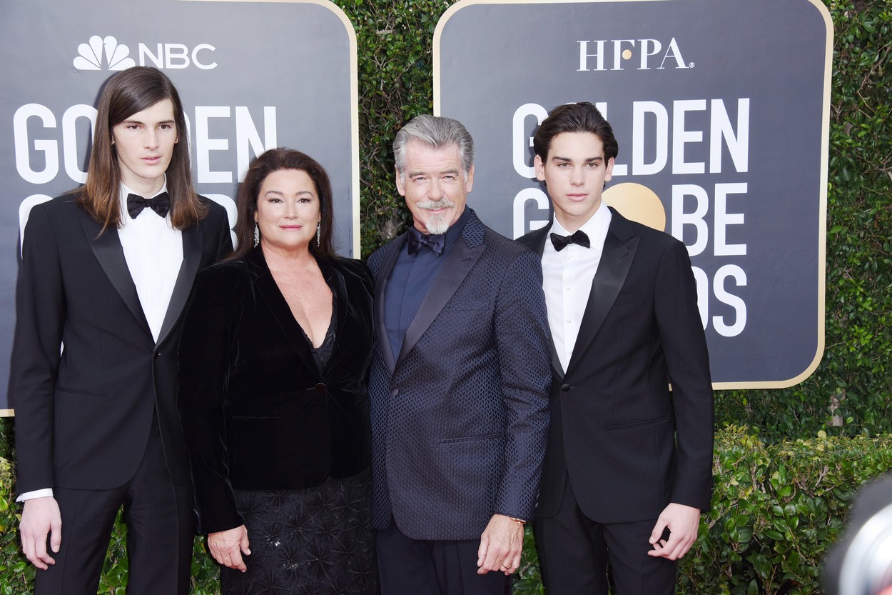 Paris Brosnan, Keely Shaye Smith, Pierce Brosnan és Dylan Brosnan a 2020-as Golden Globe-gálán (Fotó: Profimédia)