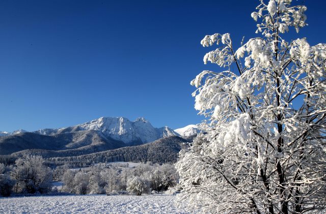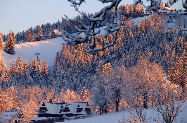 Vastag hóréteg lepi a faágakat a tátrai üdülővárosban, Zakopanéban (MTI/EPA/Grzegorz Momot)