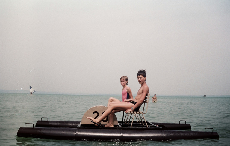Mi Alsóörsön nyaraltunk mindig a nagymamáméknál. Szerettem, hogy mindennap volt valami kerti munka, szedtük a sóskát, meggyet, cseresznyét, meg a nagypapám reggeli tornát tartott a kertben – meg úgy általában a kertért odavoltam, sosem volt Budapesten kertünk –, és hogy szabadon biciklizhettünk álló nap a környékbeli gyerekekkel. Meg persze azt is imádtuk, hogy 500 méterre volt tőlünk a Balaton, ki sem lehetett szedni minket a vízből, ha lementünk a partra (egészen addig, míg az egyik évben láttam véletlenül egy keveset a Cápából, mert onnantól pár évig meg voltam róla győződve, hogy a Balatonban is lehet cápa.)” (Gabi)