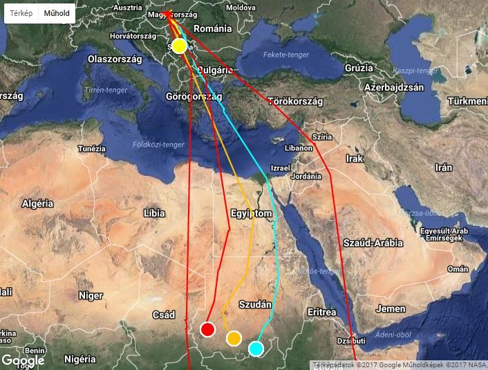 A szalakóták nevei is külön tiszteletet érdemelnek, az pedig, hogy ennyit képesek repülni, mindig bámulatba tud ejteni. Hadnagy, Éganya és Eleven már Szudán déli részén pihennek, Vendel később indult útnak, utolsó jelei Szerbiából érkeztek.