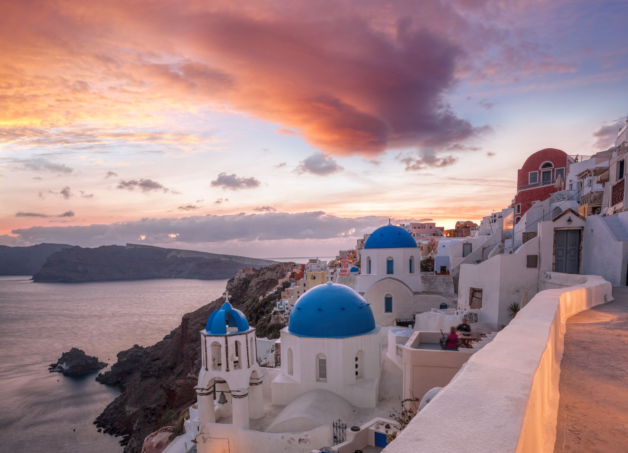 A Kükládok szigetcsoport legdélebbi tagján, Santorini szigetén található az a festői település, melynek fotója a legtöbb görög turisztikai kiadvány borítójáról visszaköszön. Mivel a sziget közepét 3500 évvel ezelőtt berobbantotta egy vulkanikus kitörés, egy 400 méter mély kaldera jött létre, és az Égei-tengerbe ereszkedő sziklaszirteken helyezkedik el Oia is. A hófehérre festett falak és az égszínkék kupolák városkájának minden szeglete mesebeli: kanyargós utcácskák, kis lejáratok egyik szintről a másikra, gyönyörű kilátás a tengerre. Nem csoda, hogy az egyik legtöbbet fotózott hely a világon, és a sziget lakói úgy tartják: