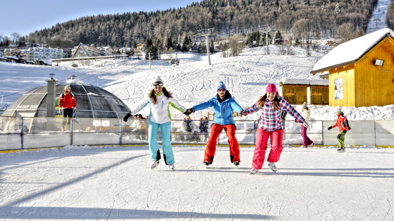 Itt nem csak a síelőkre gondolnak. Tényleg minden van, amivel a havas élményeket fokozni lehet. Sífutópálya, kutyafogatozás, motoros szánok, siklóernyőzés…és persze az elmaradhatatlan korcsolyapálya. Reggel 10-től egészen este 22 óráig van alkalmunk siklani a csodás jégen, így akár síelés helyett, vagy síelés után is megcsillogtathatjuk tudásunkat a jégtükör színpadán.