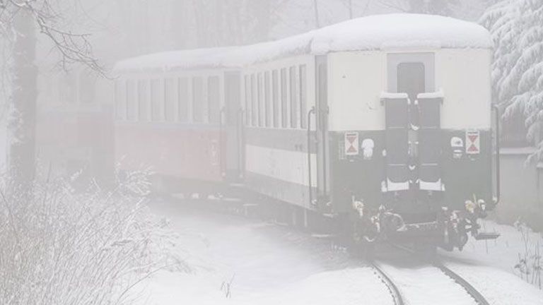A Gyermekvasút a hóesésben a Normafánál – MTI Fotó: Szigetváry Zsolt