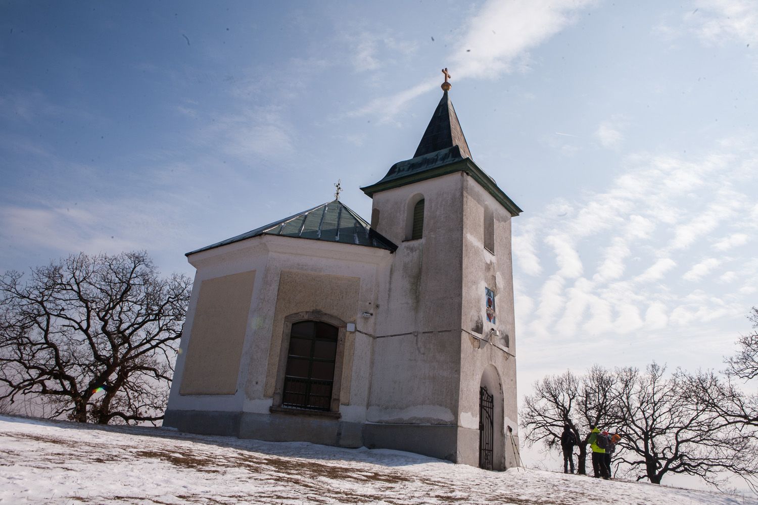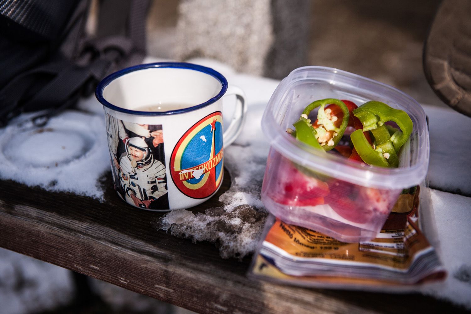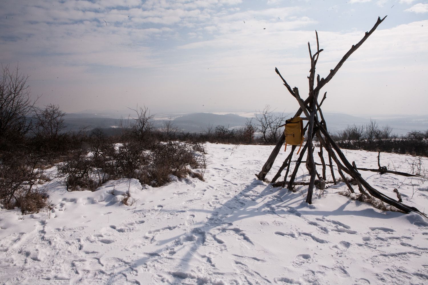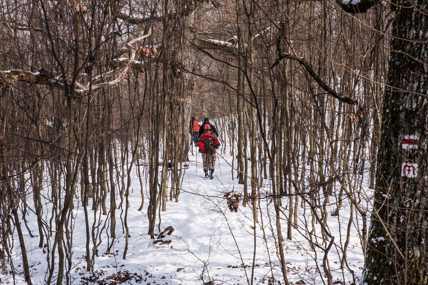 A táv első egyharmada simán ment: kedélyesen cseverésztem, megállás nélkül fotóztam, folyamatosan tátva maradt a szám a havas táj látványától, élveztem a kedves emberek társaságát, és már majdnem elhittem, megy ez, mint a karikacsapás, amikor deréktájon fájdalmas görcs rántott össze L alakba. Megértettem az üzenetet, átmozgattam magam, és alázattal folytattam a gyaloglást.
