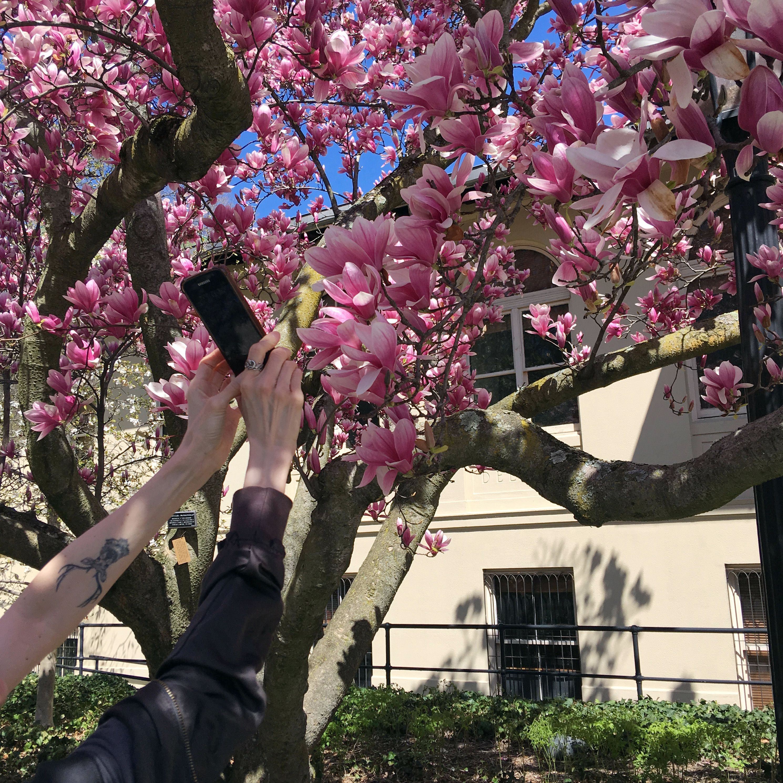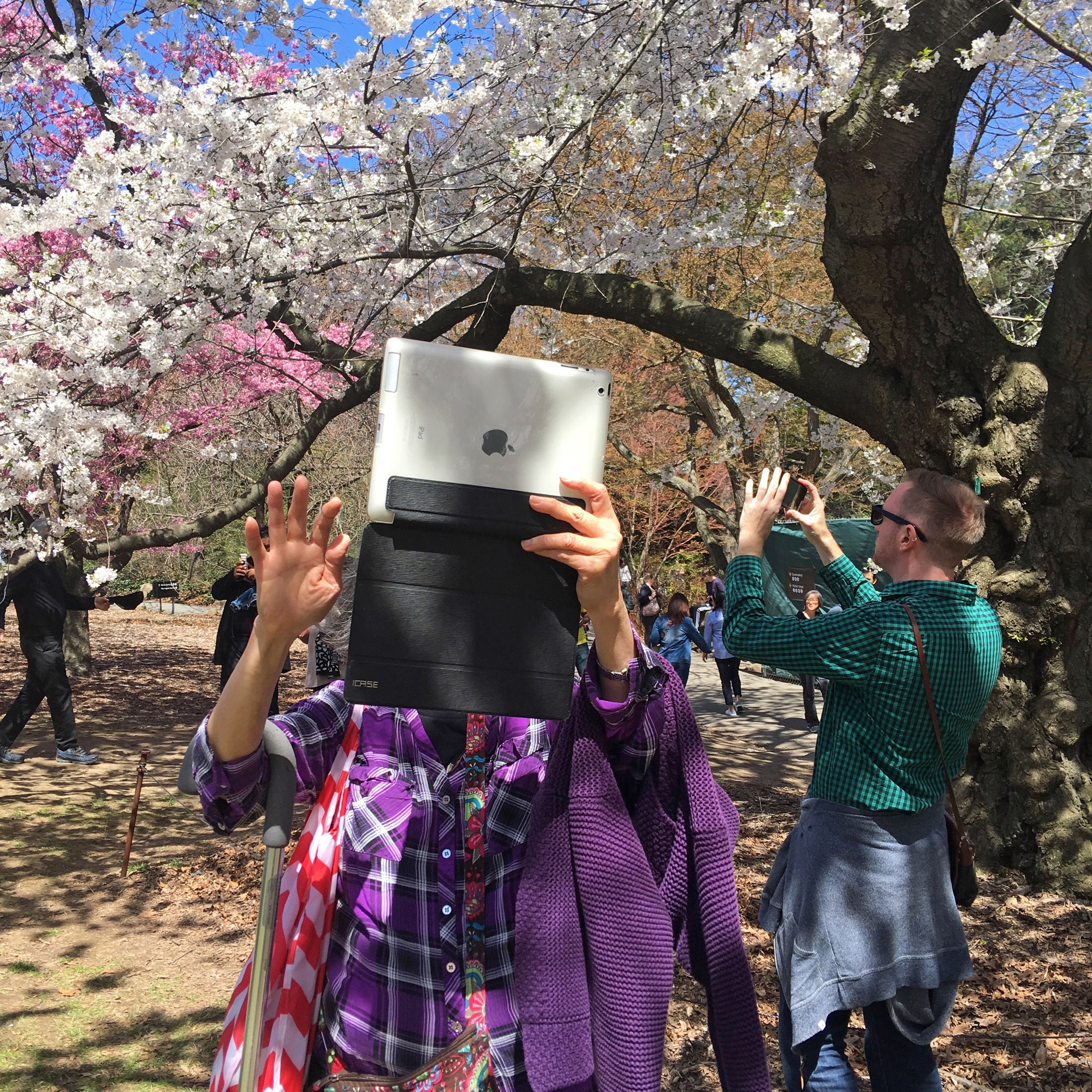 Ha most készülsz New Yorkba, semmiképp se hagyd ki a látnivalók közül a Botanikus Kertet Brooklynban (Brooklyn Botanic Garden), főleg ha új profilképet szeretnél magadnak virágzó fákkal a háttérben. Az egész évben mindössze néhány hétig virágzó cseresznyefák idén viszonylag későn, csak május elején kezdtek nyílni, mostanra viszont bombajó látványt nyújtanak, nincs is ember, aki ne akarná megörökíteni. (Na jó, egyvalakit láttam telefon/fényképező nélkül sétálni, egy idős néni térképpel a kezében próbált tájékozódni.) Tömött sorokban tódulnak be a turisták a kertbe különböző képrögzítő eszközökkel felfegyverkezve (volt, akin három kamera lógott egyszerre), mondhatni, a téma mindenkit megérintett: kicsiket-nagyokat, profikat, amatőröket egyaránt. Odaállítják szeretteiket a már virágzó fák elé, ráveszik őket, hogy a szigorú őrök tiltása ellenére ragadjanak magukhoz egy-egy virágot, majd csíz. Szelfibotok repkednek, fényképezők kattannak.