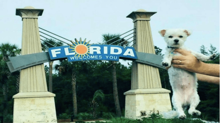 Az egész országot átszelve érkezett Floridába, ahol aztán a kollégista Lexee szülei az összes floridai nevezetességgel lefotózták a cukin pózoló kutyust. Hamarosan egy kaliforniai nyaralás is vár a kiskutyára, ahová azonban már repülőn fog érkezni.