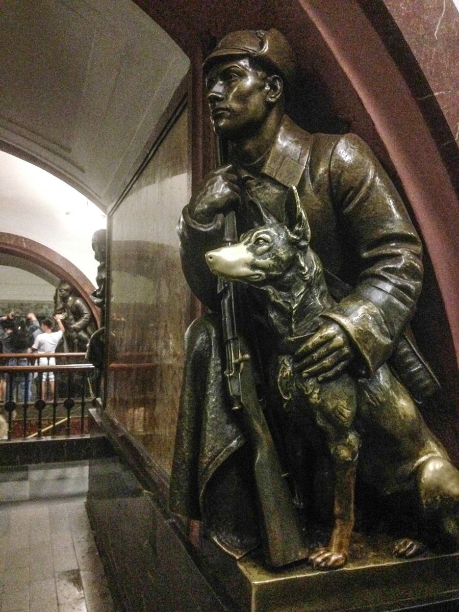 Mindig akad bámészkodó a Tyeatralnaja állomáson is, ami különböző életnagyságú bronzszobrokkal van tele. A népi hiedelem azt tartja, hogy jó szerencsét hoz a szobrok fogdosása, ezért a fényesre koptatott kutyaorr, a kakas, vagy egy lábfej úgy ragyog itt a föld alatt, mintha tényleg aranyból öntötték volna.