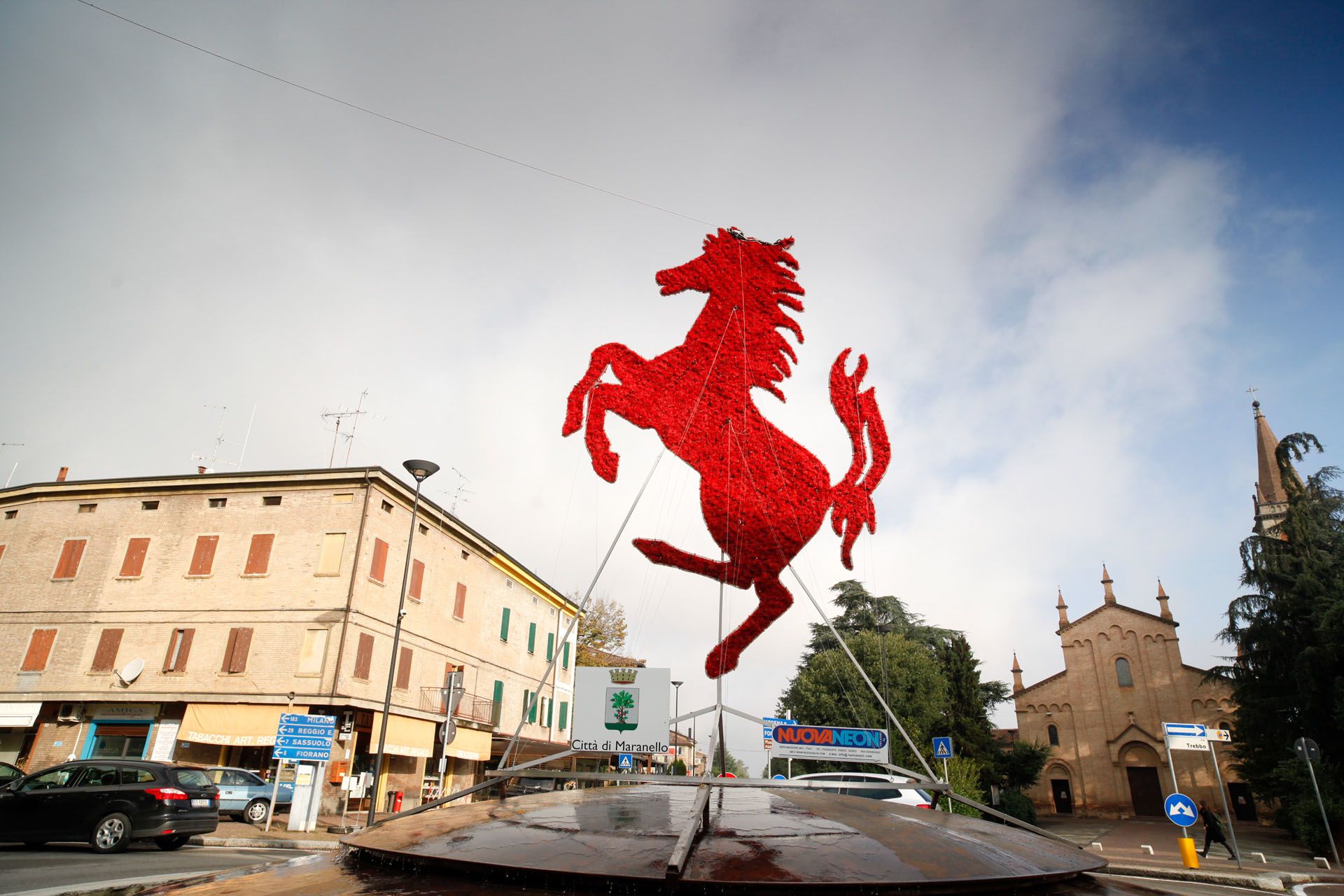 A 17 ezer lakosú Maranello Modenától húsz kilométerre fekszik, Enzo Ferrari 1940-ben helyezte át ide a gyártást. Itt található a Fiorano versenypálya is, ahol az autókat tesztelik. A városkában tényleg minden a legendás, tűzpiros sportkocsikról szól. A parkban még a pihenőpadot is egy Ferrari elejéből alakították ki, a körforgalom közepén ott ágaskodik a cég logójában látható ló. Szálláshelyünkön, a Maranello Village-ben egy Forma–1-es autóval volt egybeépítve a recepciós pultja, és a szobánk falát is autóalkatrészek díszítették.