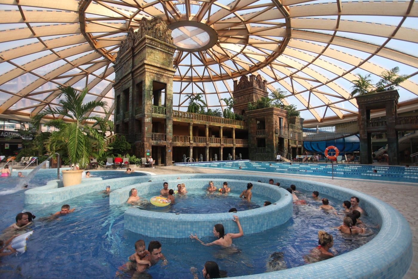 Európa egyik legnagyobb beltéri aquaparkja, mely egy trópusi hangulatú Angkor-romtemplommal is büszkélkedhet, amelyet az eredeti kambodzsai Angkor Wat templom mintájára készítettek. A 11 különleges csúszdának olyan frappáns fantázianevei vannak, mint például Szivárvány, Kamikaze, Repülő szőnyeg, Fekete lyuk. A csusszanás mellett szörfözhetünk, búvárkodhatunk, belebújhatunk a vízen járó labdába, szaunázhatunk és termálfürdőzhetünk, a gyerekek pedig számos gyerekprogramon is részt vehetnek nemcsak nyáron, de a tanév során is.