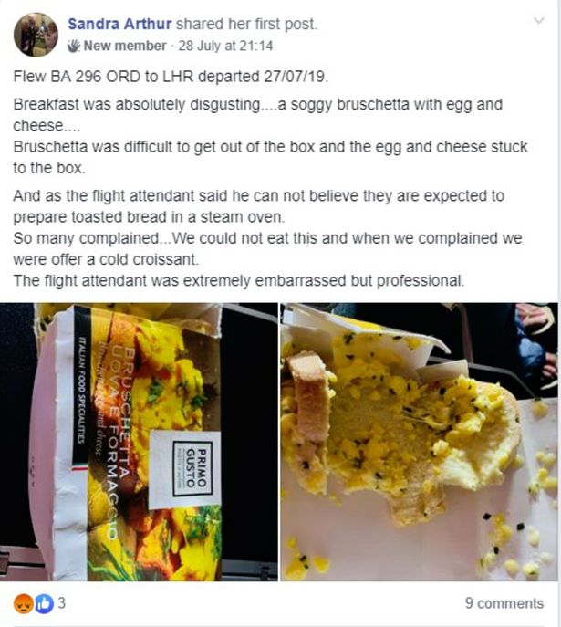 Sandra Arthur a chicagói O’Hare nemzetközi repülőtérről utazott London Heathrow-ra a British Airways menetrend szerinti járatával, amire 1200 fontért vett jegyet. A hétórás repülőút alatt azonban undorító reggelit szolgáltak fel. Amikor ezt több utas is szóvá tette, a személyzet hideg croissant kínált kompenzációként.