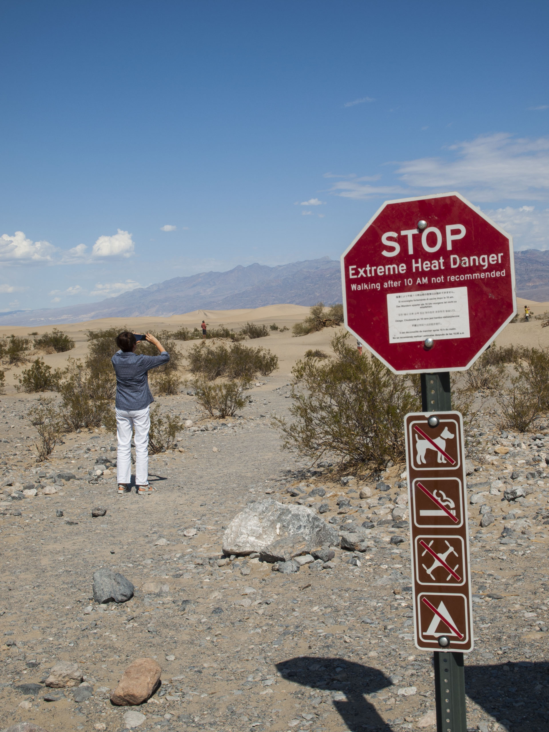 És most valami teljesen más: sivatag, amíg a szem ellát. A Death Valley-nek nem csak a neve vészjósló – száraz, forró, kietlen területről beszélünk, ahol nincs hova bújni a nap elől, és öt perc alatt le lehet égni (teszteltük), látnivalót pedig nem sok minden kínál a köveken meg a homokon kívül. Természetesen úgy igéző az egész, ahogy van: itt található az USA legmélyebb pontja, a 86 méterrel a tengerszint alatt fekvő Badwater Basin (ez is micsoda név már!), ahol szó szerint sós a talaj, és az Antonioni-filmet ihlető, holdbéli Zabriskie Point is, de igazából akárhova nézünk és megyünk, nem lehet szabadulni a varázslat alól, még ha ez azt is jelenti, hogy folyton a fejünk fölé pillantgatunk, ott köröznek-e már a dögkeselyűk. Más kérdés, hogy ki akar és bír itt gyalogtúrázni – a Death Valley-ben tartanak amúgy ultramaratonokat is (!), de épeszű ember errefelé két lábon csak hajnalban és késő délután mozog hosszabb távon, és azt is csak akkor, ha tényleg felkészült (meg elbír egy 19 literes vizesballont a hátán). Nem baj, az autó+séta kombó is abszolút elfogadható.