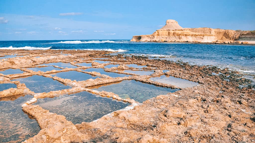 Soha véget nem érő, tenger- és szél csiszolta szikla mélyedések, sótartályok kockás táblája. A tengerpart mentén 3 kilométer hosszan elterülő tárnákat még ma is sólepárlásra használják. Az itt termelt só a máltai konyha elengedhetetlen alapanyaga. A nyári hónapokban tanúja lehetünk, ahogy a sót betakarítják. Tudtad, hogy egy kiló só előállításához 24 liter tengervízre van szükség?