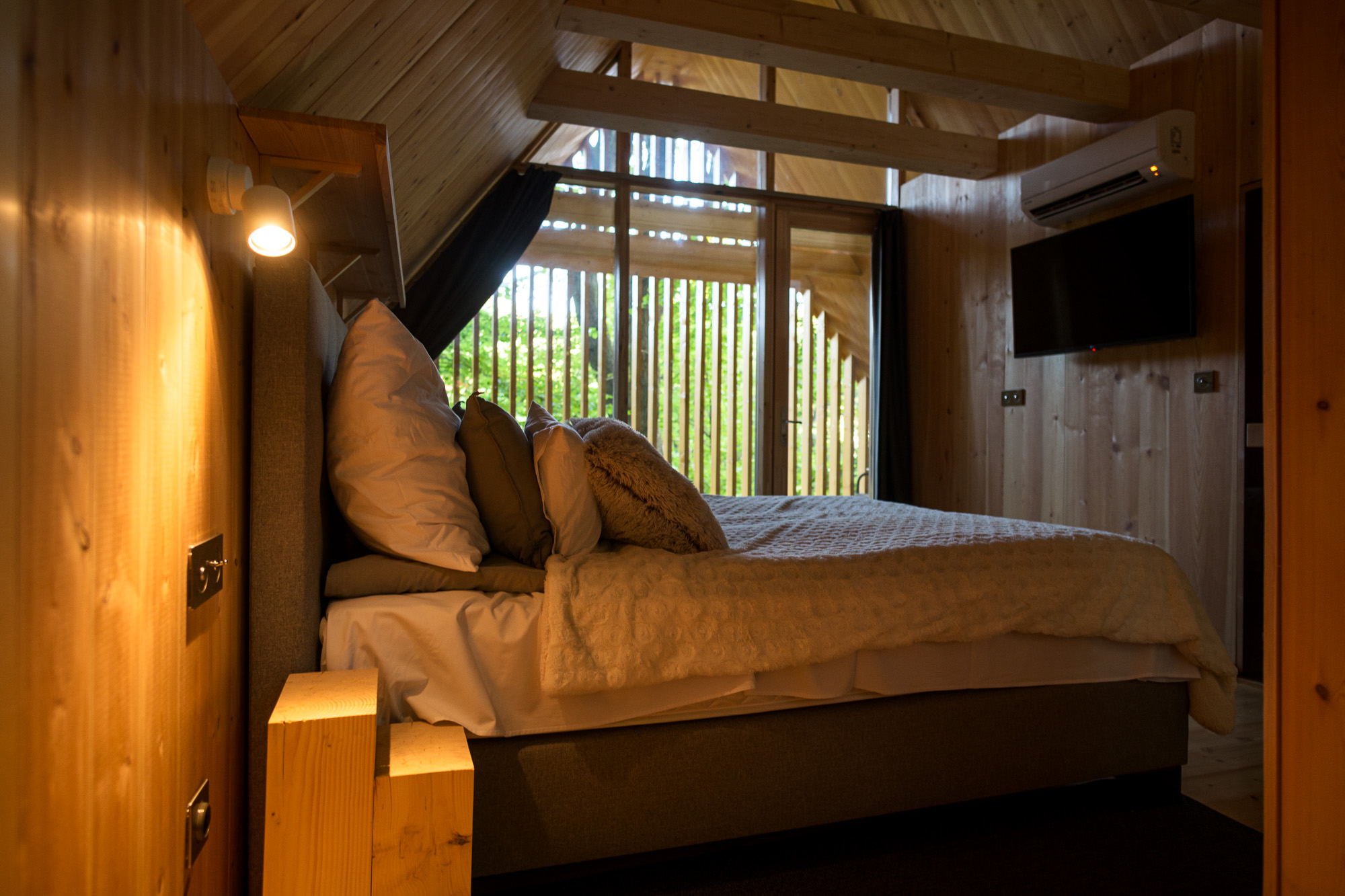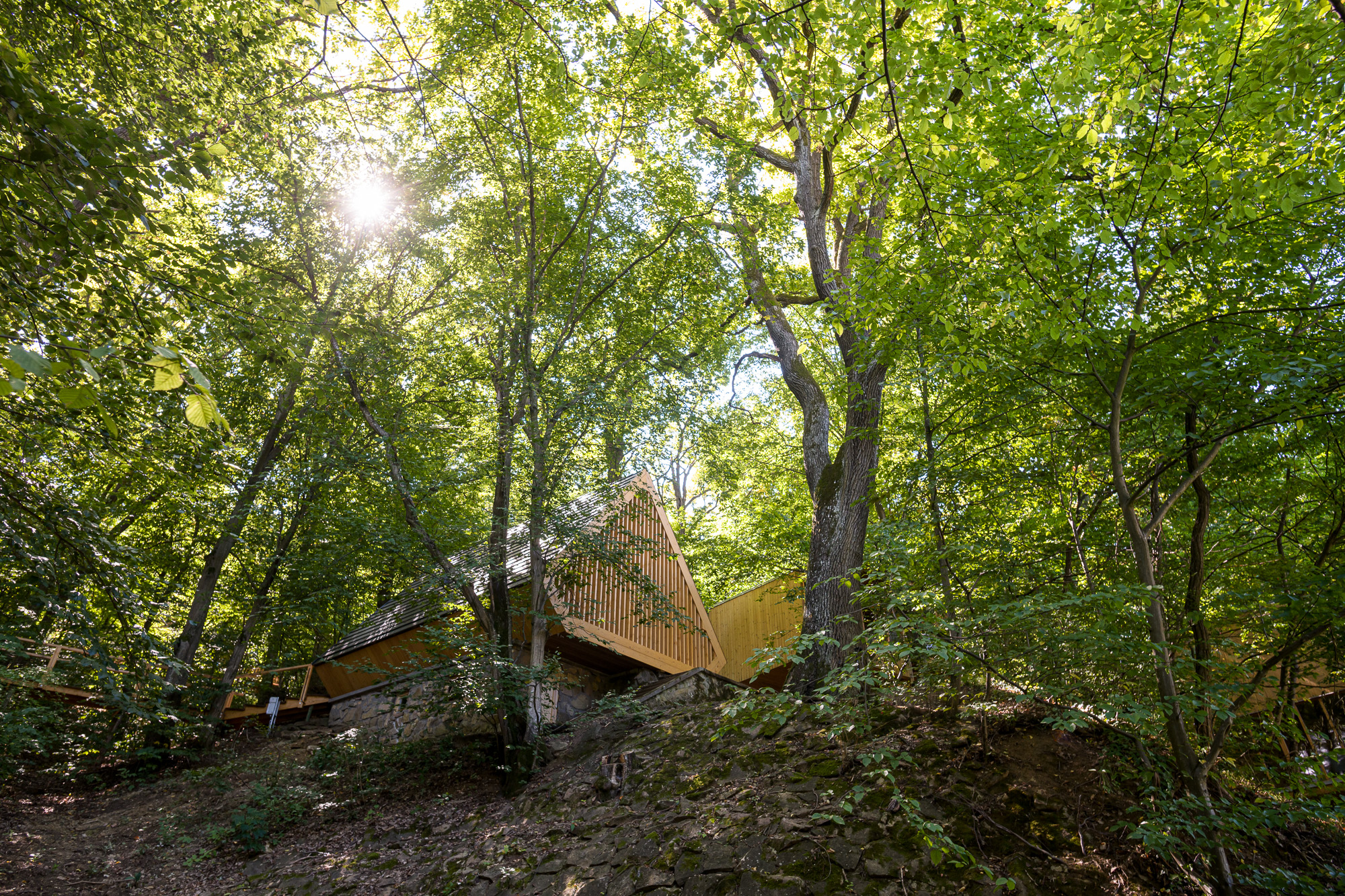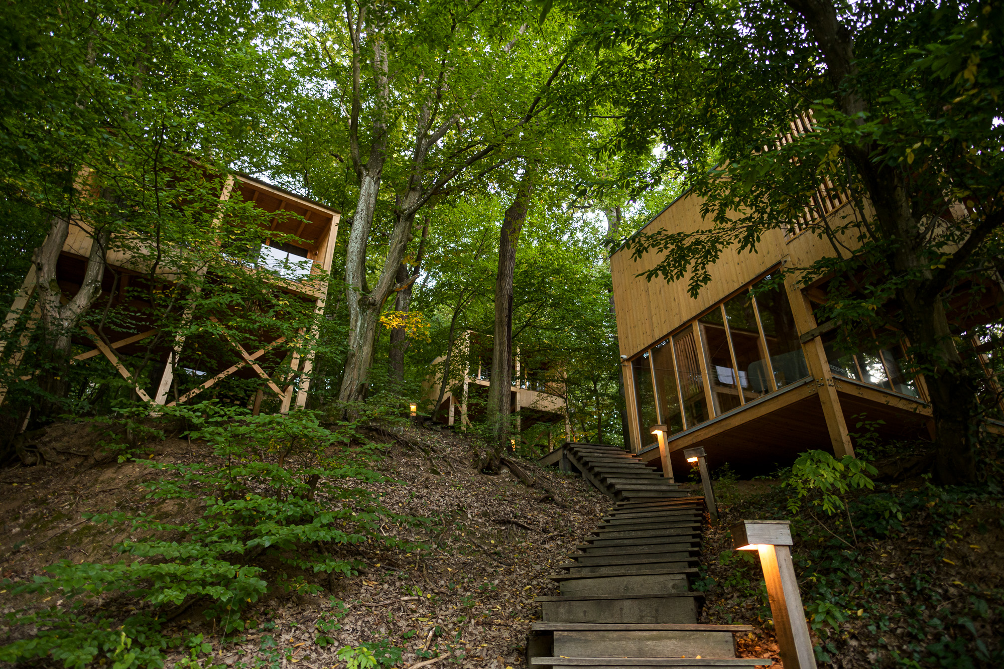 Célállomásunk koordinátái a mesés nevű Kánya-patak és a síkfőkúti alsó tó mellé, az erdőbe, a lombok közé vittek bennünket, itt épült meg ugyanis az a – két személyre tervezett – öt lomház, ami négy csillaggal fejeli meg az elvonulás műfaját. Az év szállása címmel kitüntetett Treehouses az erdő csendjével, illatával, nyüzsgés, család, gyerek és kisállat nélkül, távol a többi vendégtől és személyzettől várja azokat párokat, akik luxuskaranténban szeretnék kisimítani az idegeiket. Hogy ez mit jelent pontosan? Különleges és látványos, egymástól távol eső faszerkezetes házakat, a fa illatába csomagolt letisztult enteriőrt, a fürdőszobában elhelyezett, az erdőre néző privát infraszaunát, extrém kényelmes franciaágyat, az erkélyen beüzemelt pezsgőfürdőt, jól felszerelt minibárt, és reggelente, az ajtó előtt kiskosárban kihelyezett luxusreggelit, (amivel, zárójelben megjegyezném, az ételallergiáktól szenvedőkre is gondolnak).