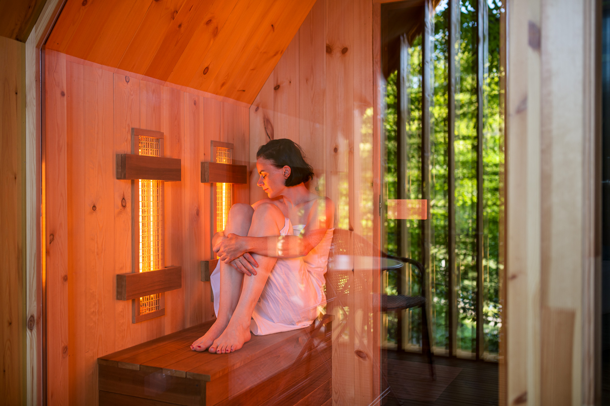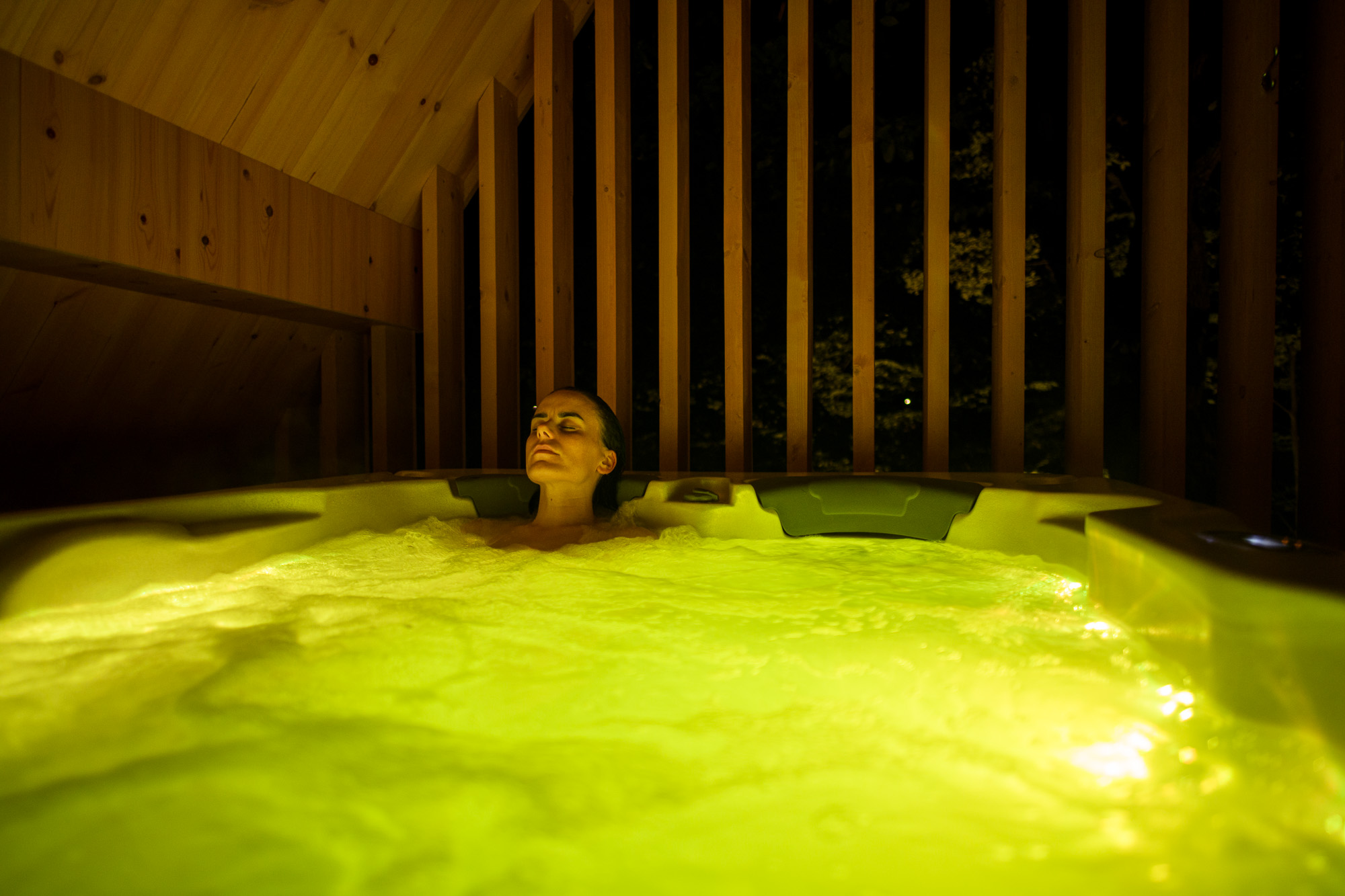 Mondtam már, hogy privát jacuzzi és infraszauna jár a szobához – amely egyébként is inkább egy lakás? Lehet, hogy már említettem, mindegy is. Azon túl, hogy kütyübolond férfiként külön öröm volt felfedezni, melyik gomb mire jó – a jacuzzi RGB-fényeitől előjött belőlem az egyébként sem túl mélyen szunnyadó ötéves –, leírhatatlan bája van annak, hogy egy fetrengésre is bőven alkalmas, plusz két ülőrészt tartalmazó pezsgő medencéből nézed az erdőt, úgy, hogy senkivel sem kell osztoznod. A pároknak tökéletes csapatépítő helyszínként is bevethető infraszauna pedig nem az önkínzásról szól, mint az illóolajos vízzel fröcskölős, mindenféle növényekkel legyezős hagyományos: a testünkkel együtt melegszik fel, sokkal tovább lehet bírni tehát, és szinte érzi az ember, ahogy elhagyják a testét a városban az évtizedek alatt begyűjtött mérgek.