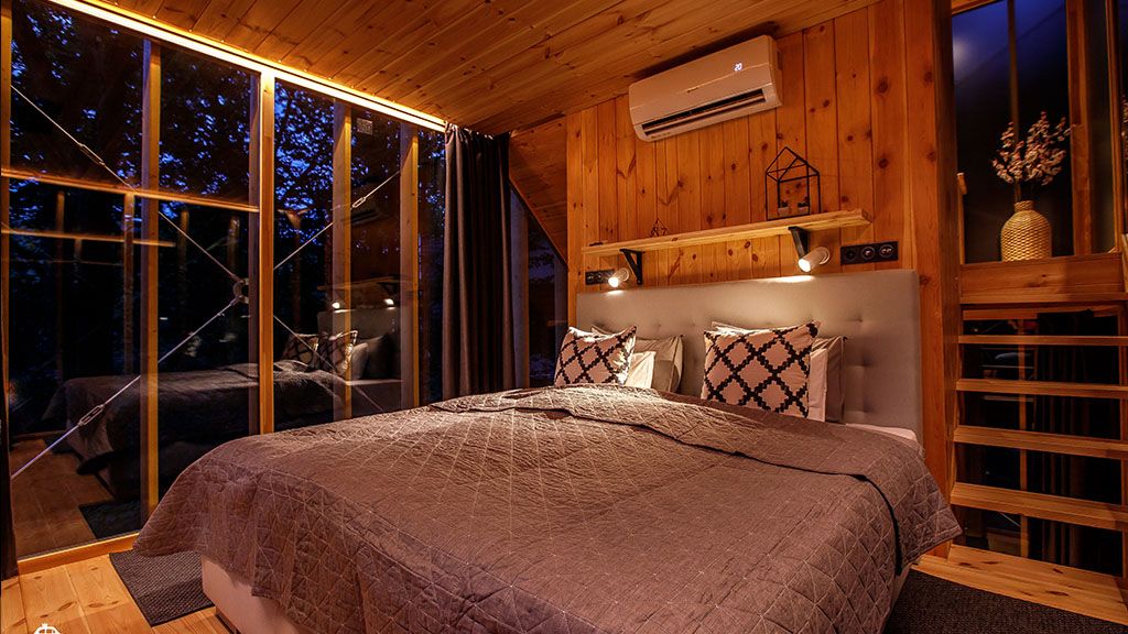 A fák között rejtőző házak ugyanis kifejezetten pároknak lettek tervezve, belső tereik igazán tágasak és otthonosak, és egyedülállóan saját, extra nagy zuhanyzóval és toalettel rendelkeznek, fent a lombkoronában. Itt mindent megtalálunk, ami egy luxuspihenéshez kell, mégis úgy érezzük, csak a természet lélegzete vesz körül bennünket. Az egész meseszerűen igényes, hiszen a hatalmas franciaágy, prémium matraccal, extra finom ágyneművel, és pihe-puha párnákkal csábít pihenésre és szerelemre.