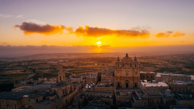 A naplemente aranysárgára festi Mdina városát Forrás: Forrás: Malta Tourism Authority