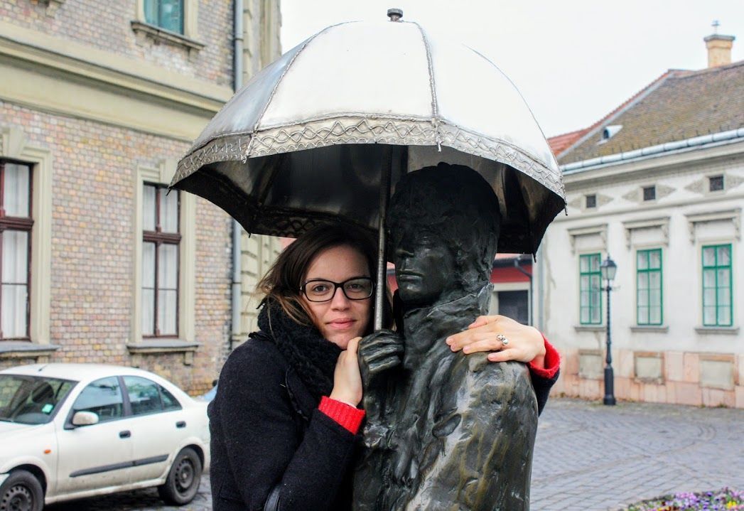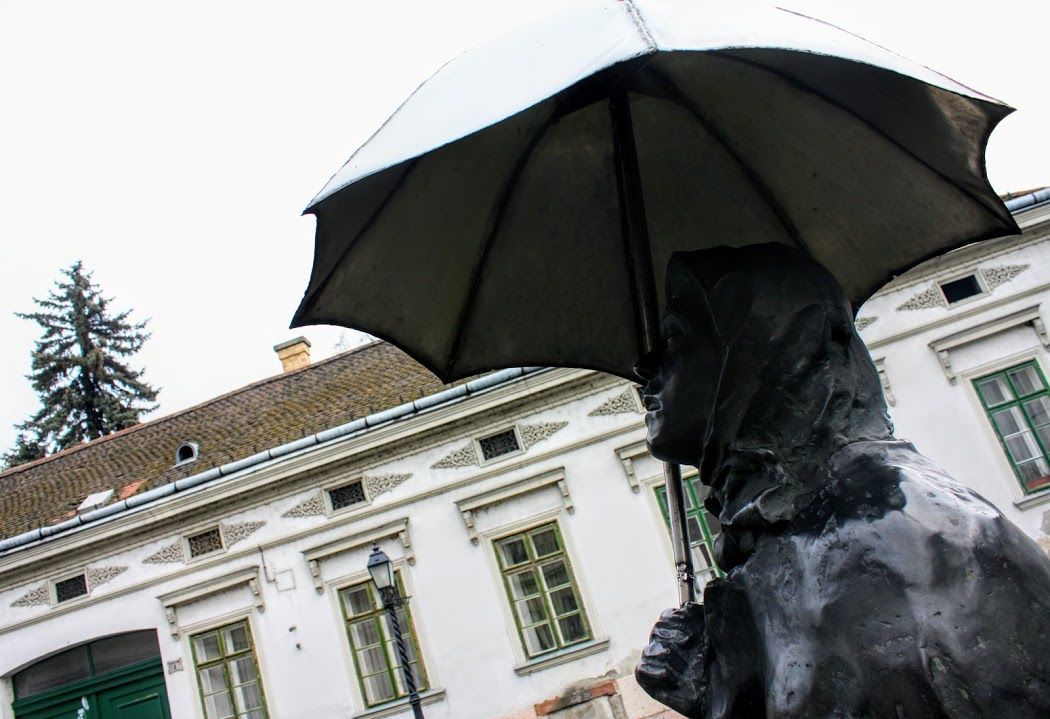 Budapesten az egyik kedvenc szobrom Óbudán, az eldugott, végtelenül hangulatos Laktanya utcában áll. Illetve állnak, merthogy ez egy szoborcsoport: négy nő vert gyökeret a szűnni nem akaró esőben, és várnak valamire. Vagy valakire. Sokszor meglátogattam már őket, mert szeretek az esőben sétálni, vagy mert van némi köze a nevemnek az esernyőkhöz. Ilyenkor néhány percig mindegyik nő mellé behúzódok, és velük együtt ácsorgok, próbálom megfejteni, mit látnak, miért rostokolnak, merre tartanak. Több tucatszor jártam arra, ám még sok-sok év után sem döntöttem sorsukról: szeretném hinni, hogy egy szebb jövő felé sietnek, vagy esetleg teljesen hétköznapi módon a buszra várnak egy hosszú nap után egykedvűen. Sokszor elképzeltem már: az egyik nő a családjához rohan vacsorát főzni, a másikat a szerelme várja valahol egy vörös rózsával. A harmadik minden bizonnyal a barátnőivel találkozik hamarosan, a negyedik nővérként kezdi az éjjeli műszakot a városi kórházban. Izgalmas eljátszani a gondolattal, hogy vajon kik ők valójában. Az eső pedig csak zuhog szakadatlan…