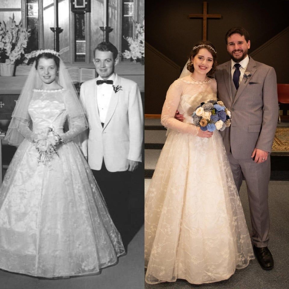 Amikor a Wisconsin államban élő Christina Moffet meglátta a nagymamája 1956-ban készült fekete-fehér esküvői fényképét, egyáltalán nem gondolta, hogy ő is ugyanabban a menyasszonyi ruhában fog férjhez menni. Egészen addig, amíg fel nem próbálta a ruhát.