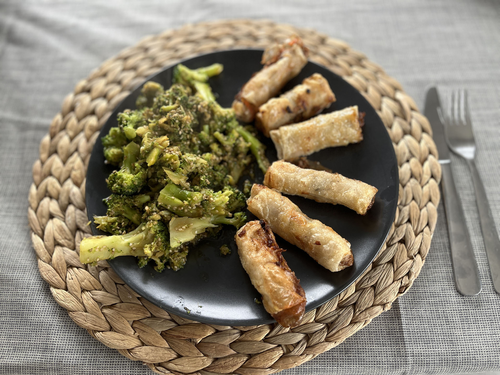 Tavaszi tekercs és szójás-gyömbéres brokkoli